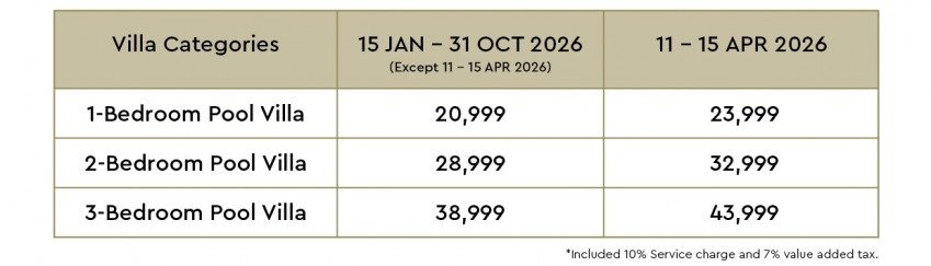 An exclusive private villa escape with daily breakfast and up to THB 3,000 hotel credit per night